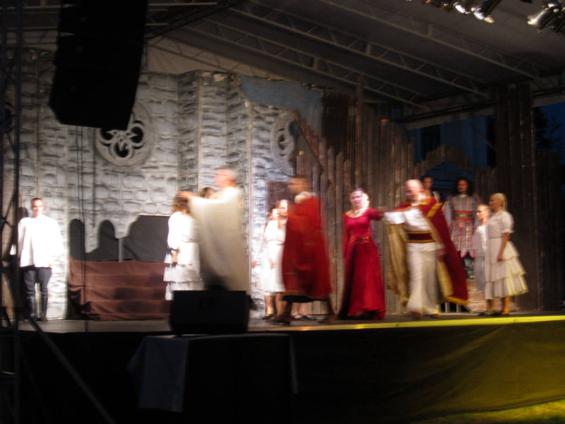 A de. 10.00 –kor kezdő rendezvény gólyalábasokkal indult, majd egy színházi előadást is láthattak a táborlakók, de az ide látogató helyiek is, valamint vendégek is.